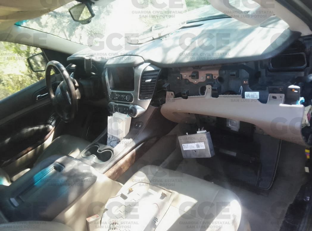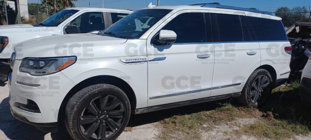 Los agentes ubicaron tres vehículos: una camioneta Ford color blanco con placas del estado de Querétaro, una camioneta Lincoln Navigator con placas del estado de Morelos y una Chevrolet Suburban color negro sin placas, todas ellas con reporte de robo con violencia en el estado de Nuevo León.