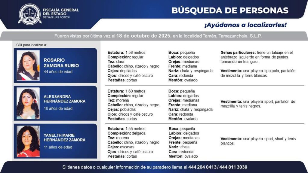 quienes fueron vistas por última vez el 18 de octubre de 2025 en la localidad Tamán en Tamazunchale, S.L.P.