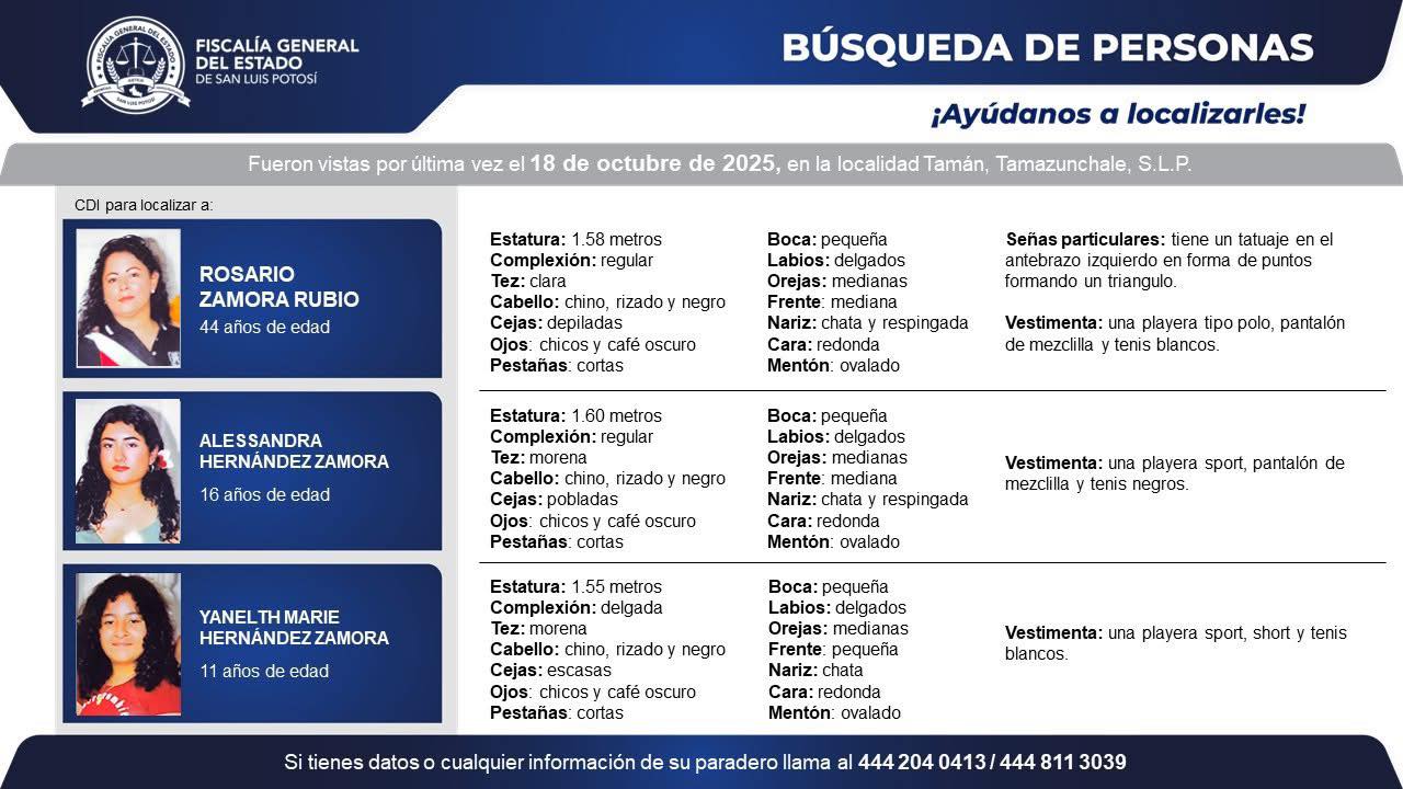 MADRE E HIJAS NO HAN SIDO LOCALIZADAS EN TAMAZUNCHALE DESDE HACE 5 DÍAS