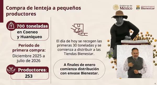 Para ello, se están recogiendo 30 toneladas de lentejas para comenzarlas a distribuir en las #TiendasDelBienestar, donde se comerciarán inicialmente mediante una marca genérica.
